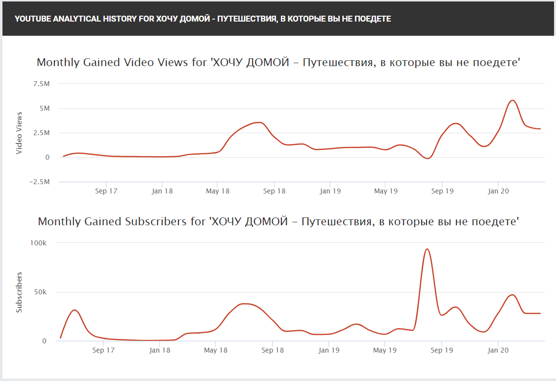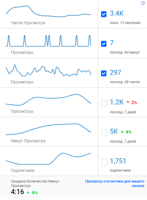 Пример сводной статистики по YouTube-каналу для автора. Доступен на любой странице видеохостинга