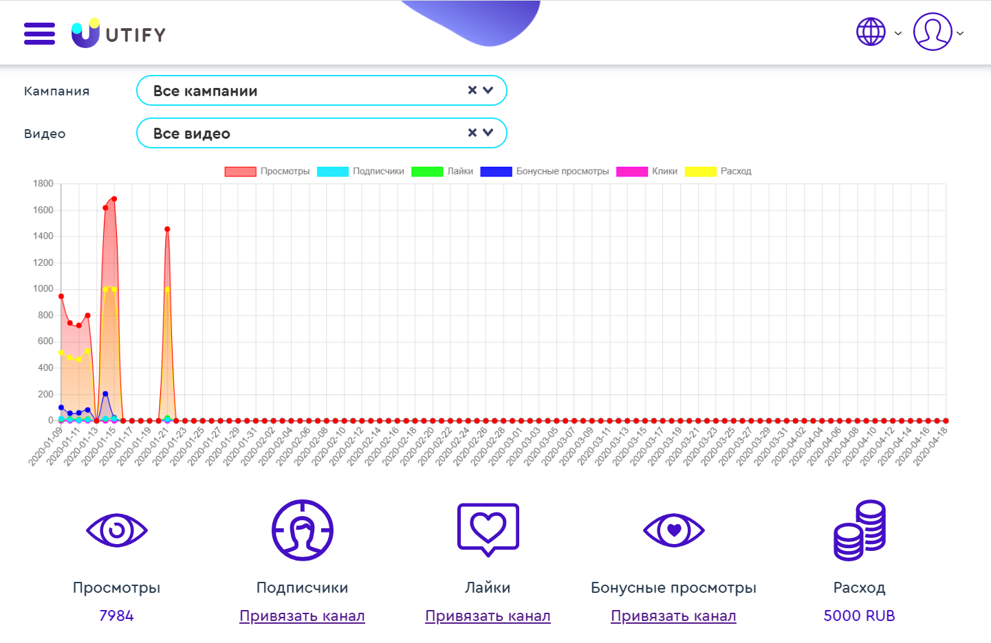 Так выглядит статистика по рекламной кампании в Utify