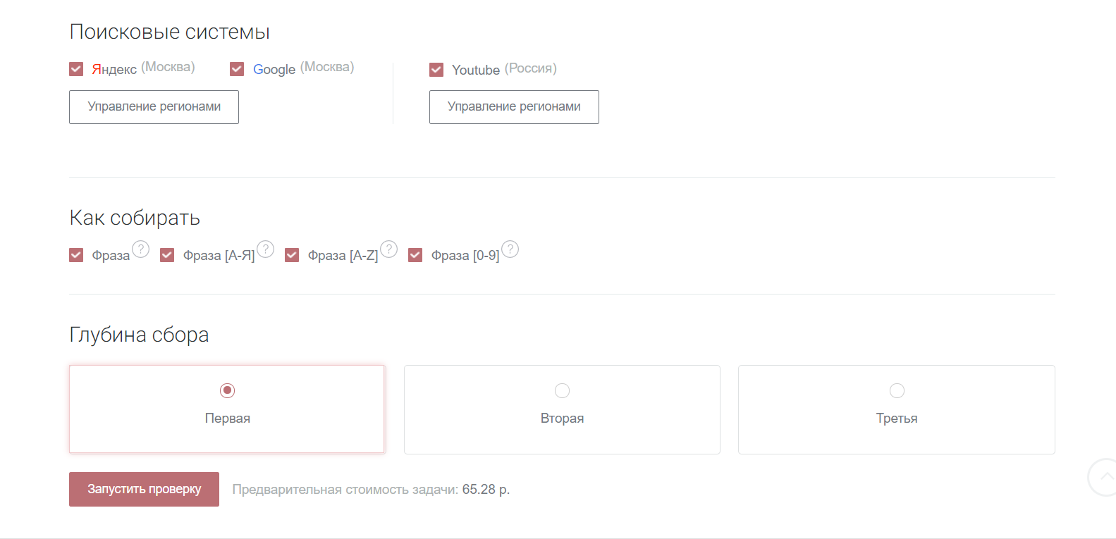 - Настраивать глубину парсинга, чистить семантику от мусора, работать с запросами на любых языках из любых регионов.