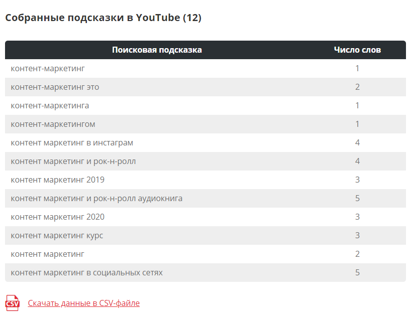 - Собирать поисковые подсказки YouTube, Google и Яндекса.