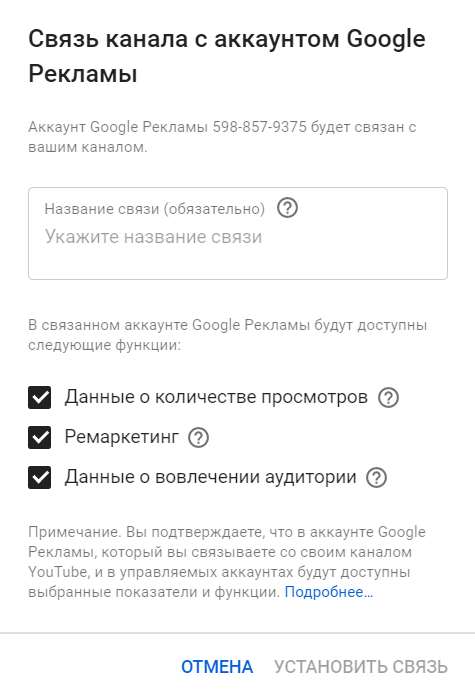 3. Привязать канал к Google Рекламе с целью получения Utify детальной статистики продвижения.