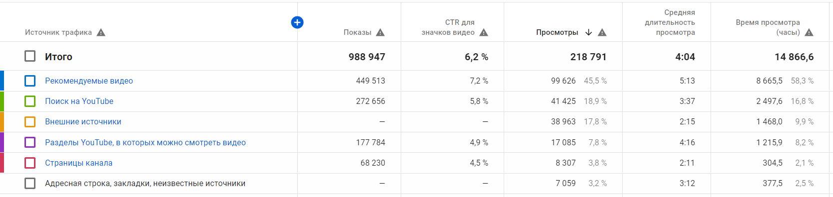 Результаты промоушена на тематических площадках можно увидеть в разделе «Источники трафика → Внешние источники» на studio.youtube.com.
