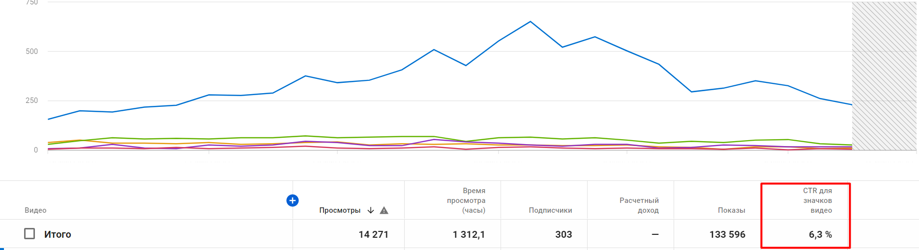 Пример отчёта по просмотрам, где есть данные по CTR