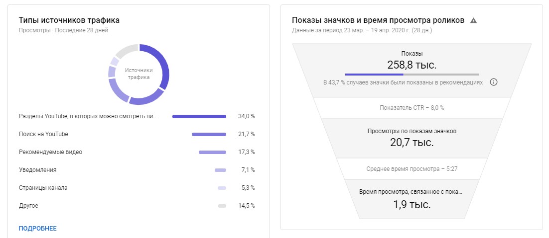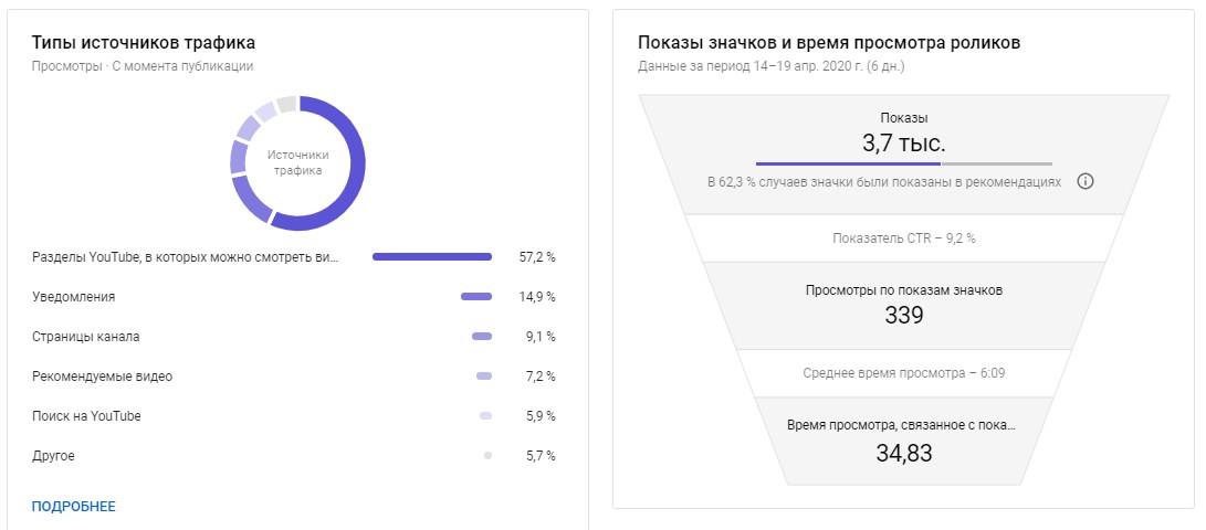 CTR показывает, как часто пользователи кликают на заставки ваших роликов в результатах выдачи, на главной странице, в рекомендованных видео и других источниках. Посмотреть общий показатель по каналу можно в разделе «Аналитика» → «Просмотры».