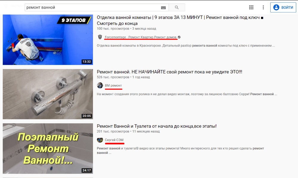 Можно задать в поиске несколько основных ключевых слов, по которым продвигается YouTube-канал, и увидеть видео с каналов, которые конкурируют по тем же самым запросам.