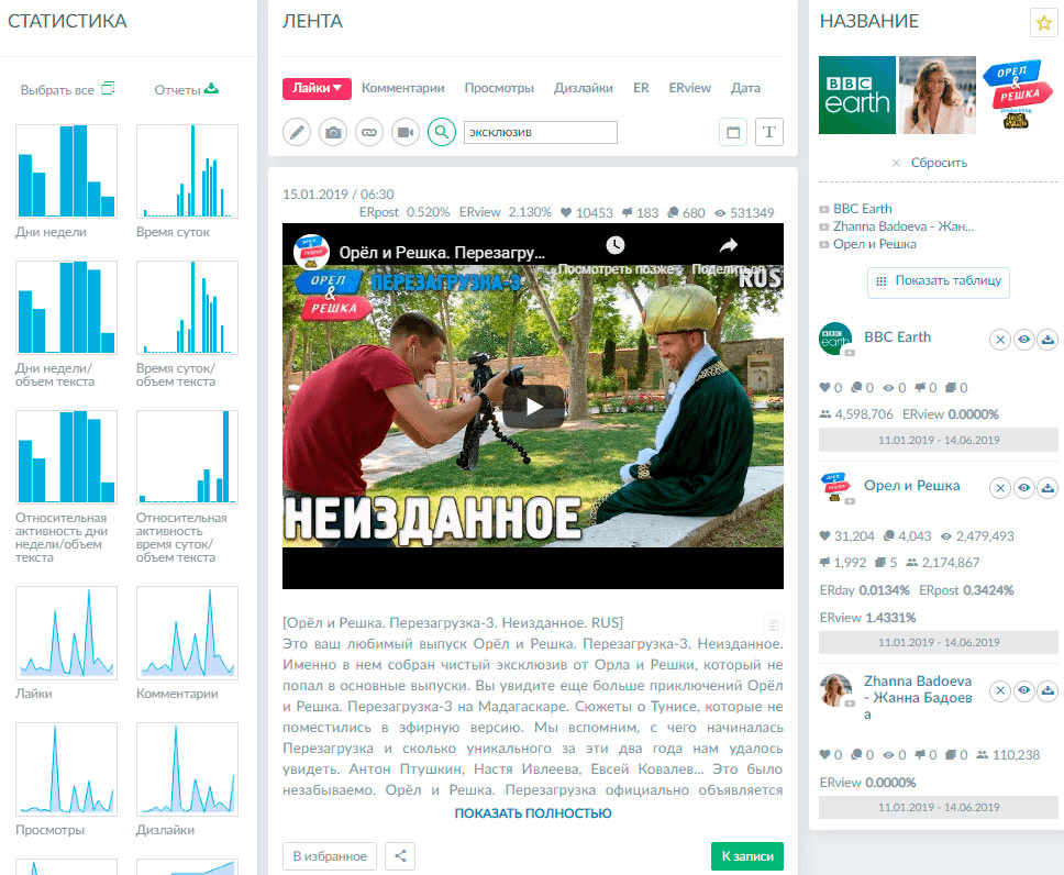 - определения оптимальной частоты публикаций, длительности роликов и т. д.