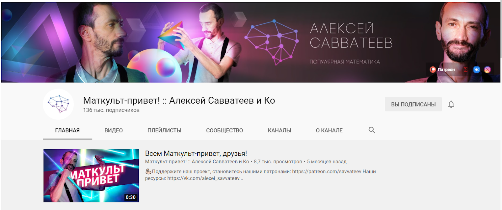Здесь все элементы хорошо сочетаются и сразу очевидно, про что этот YouTube-канал