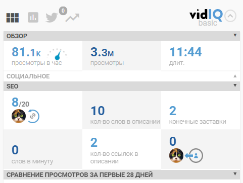 Хотя нет результатов глобальных исследований по скорости набора просмотров, можно провести собственное наблюдение. Например, установить расширение для Chrome под названием vidIQ и посмотреть статистику по роликам в «Трендах». Легко заметить, что скорость просмотров в час там будет высокой.