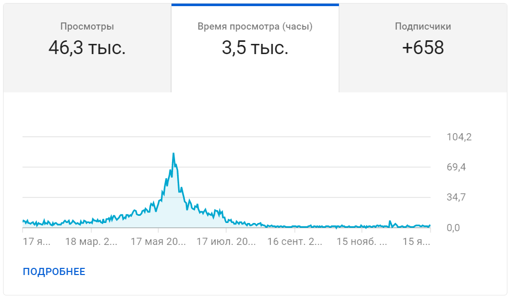 Еще можно отслеживать время просмотра — это универсальный качественный показатель YouTube. Он наглядно показывает интерес аудитории к контенту, напрямую влияет на рейтинг видео/канала в поиске и рекомендациях (1,2)