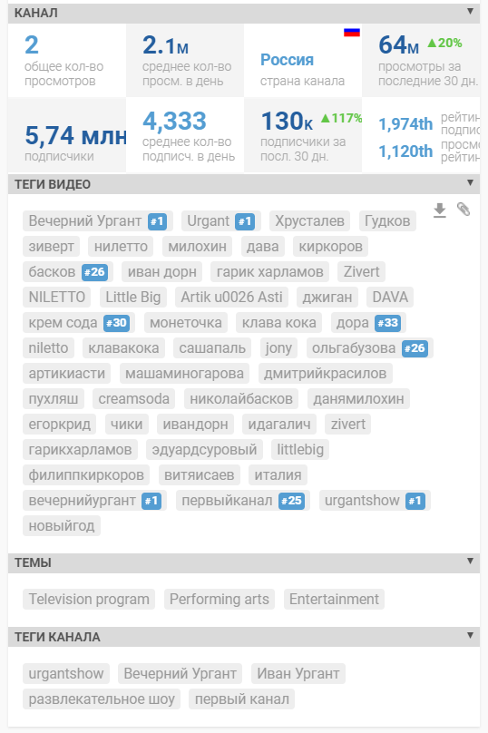 - Количество видео и частоту выхода.