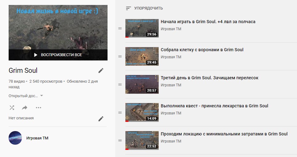 В этом разделе вам просто покажут, какие плейлисты есть на вашем канале. Зайдете в конкретный плейлист и увидите, сколько в нем видео, когда в последний раз его обновляли и сколько просмотров он получил.