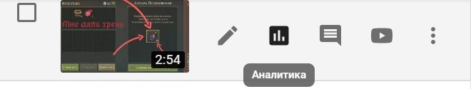 Наведите курсор на название видео и выберите «Аналитику», чтобы посмотреть данные о конкретном ролике