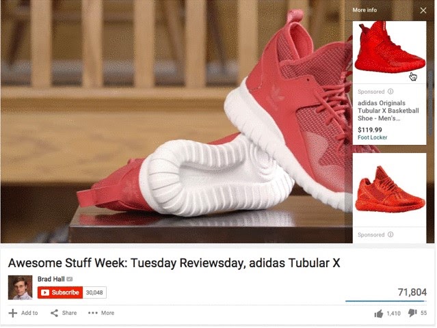 Кстати, с Bumper Ads можно использовать надстройку TrueView for Shopping и показывать пользователям релевантные товары.