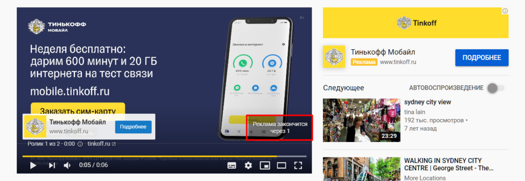 - возможность пропуска (в некоторых форматах видеообъявление можно пропустить через 5 секунд, другие нужно досмотреть до конца);