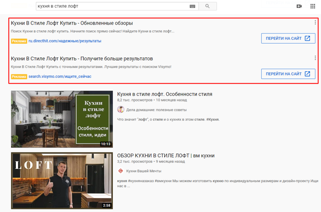 Отображаются над результатами поиска в YouTube (на десктопе и мобильных устройствах) и выглядят так: